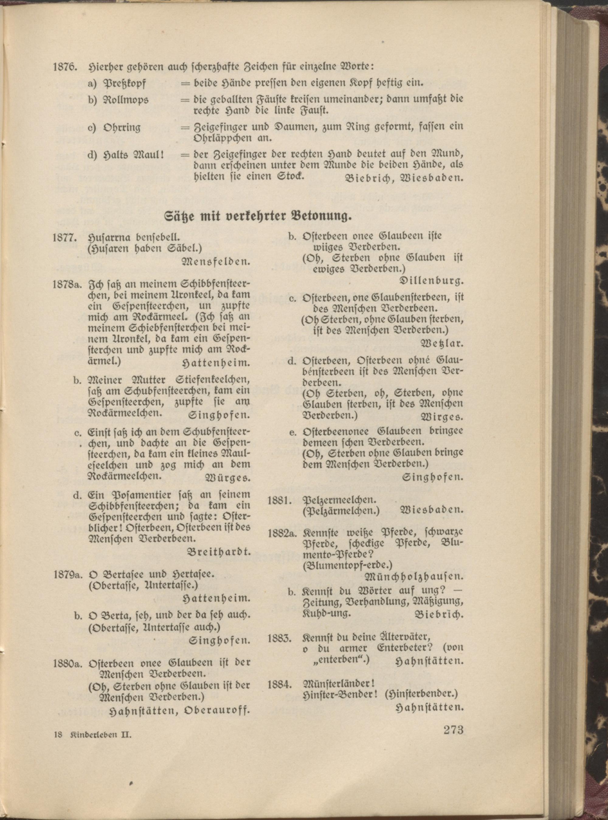 Nassauisches Kinderleben in Sitte und Brauch, Kinderlied und Kinderspiel