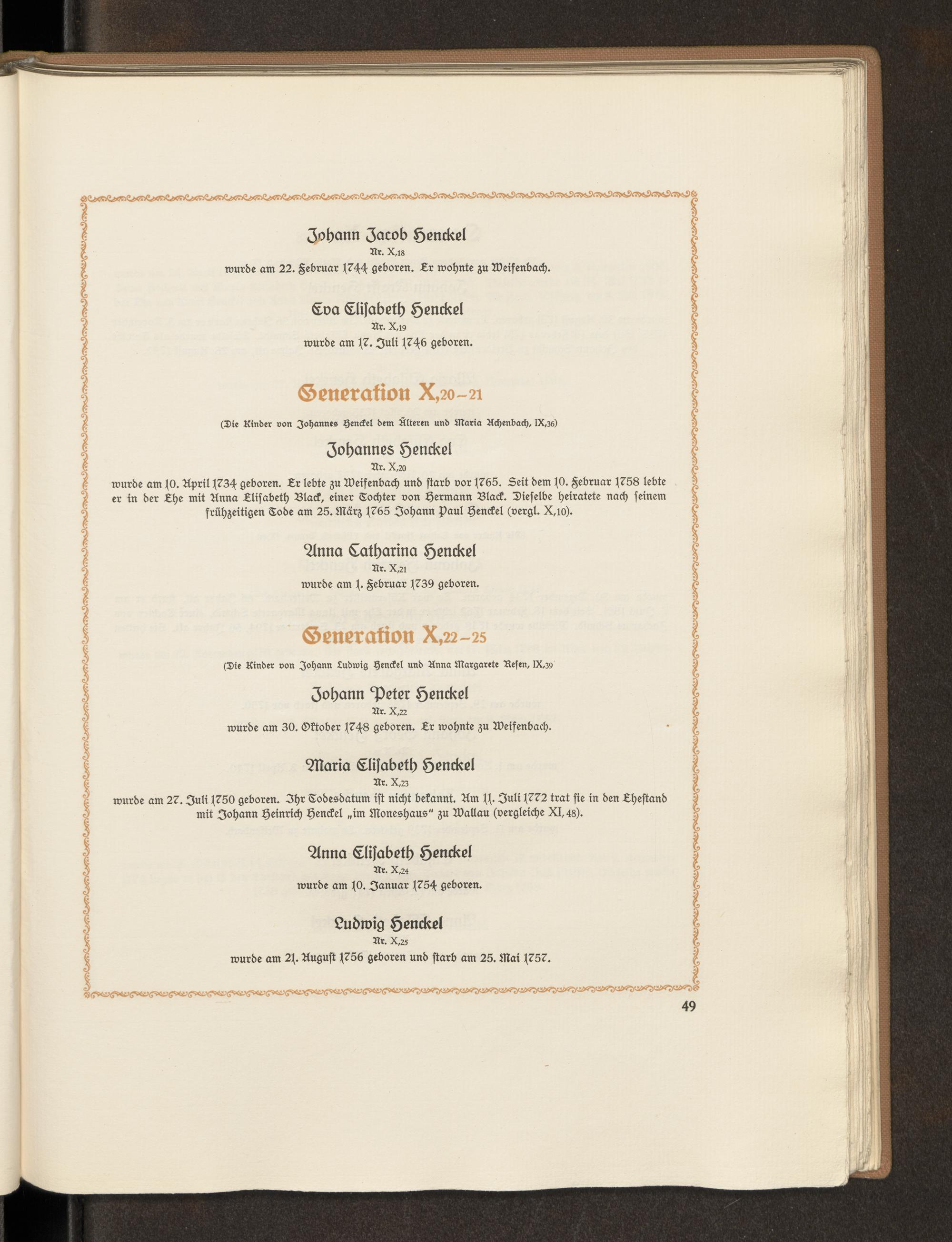 Nachrichten über die einzelnen Generationen des Geschlechts