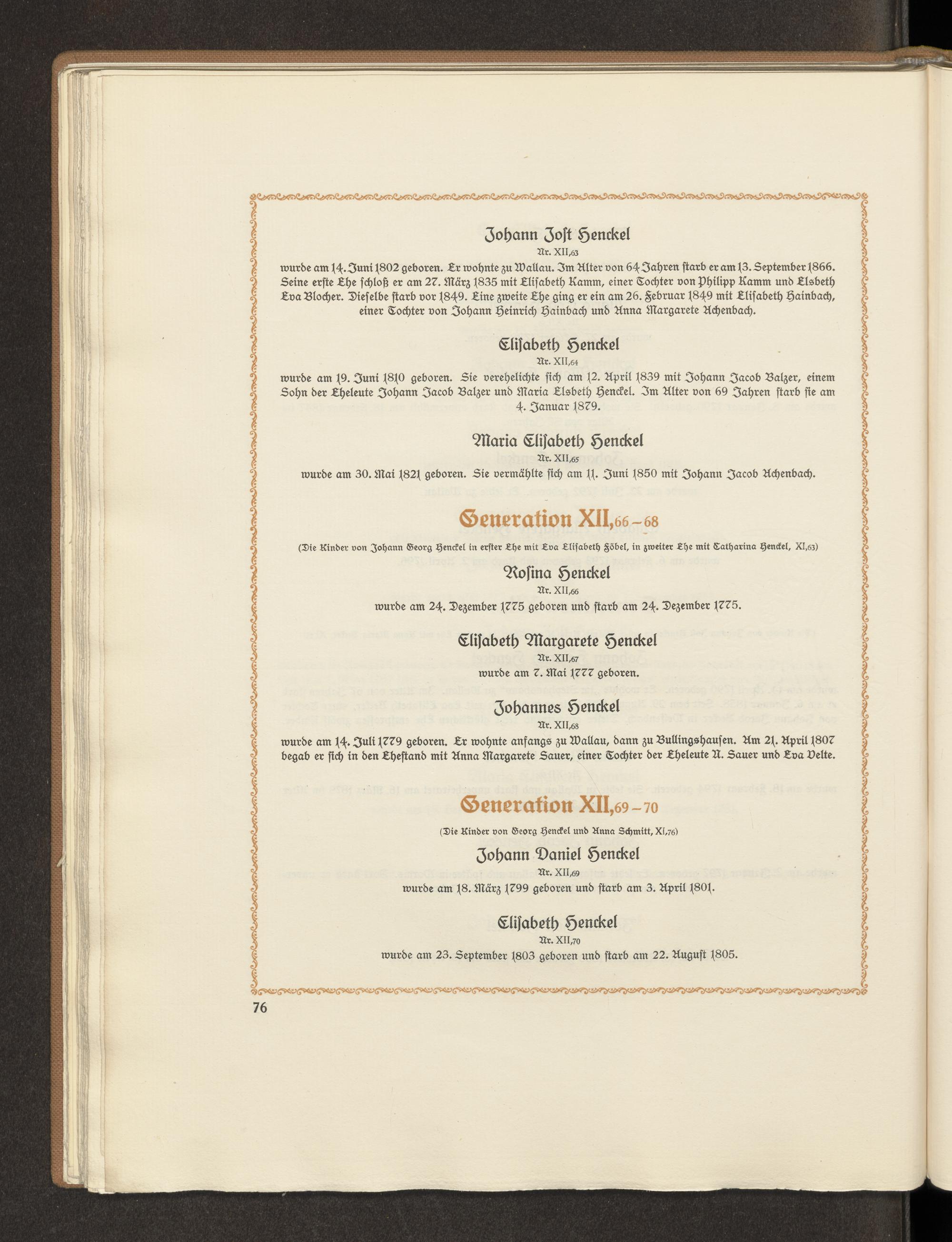 Nachrichten über die einzelnen Generationen des Geschlechts