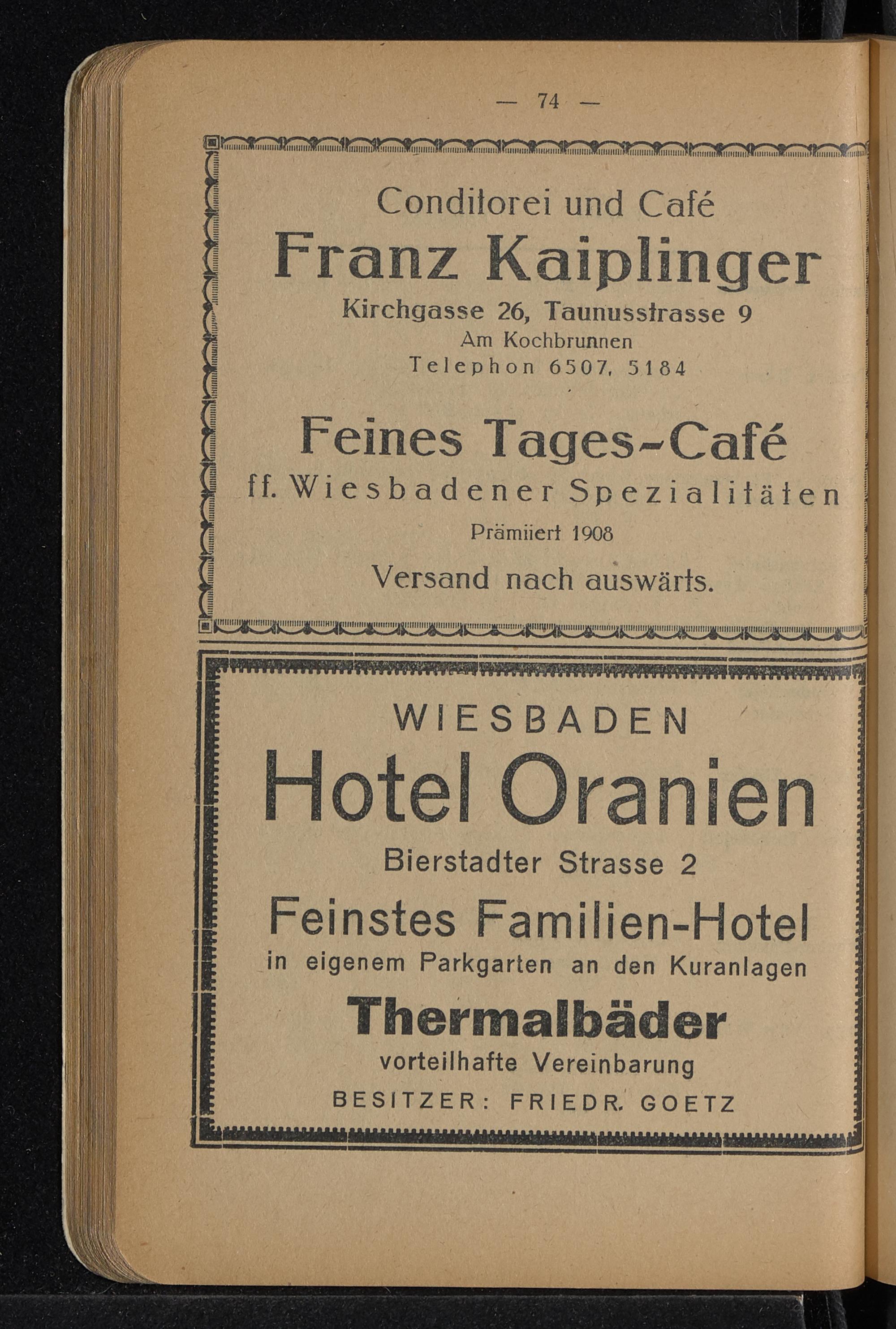 Anhang II: Empfehlungen, bezw. Inserate von Hotels, Pensionen, Privat-Lehr-Anstalten, Kur-Anstalten, Ausflugsorte und Geschäftshäuser von hier und auswärts