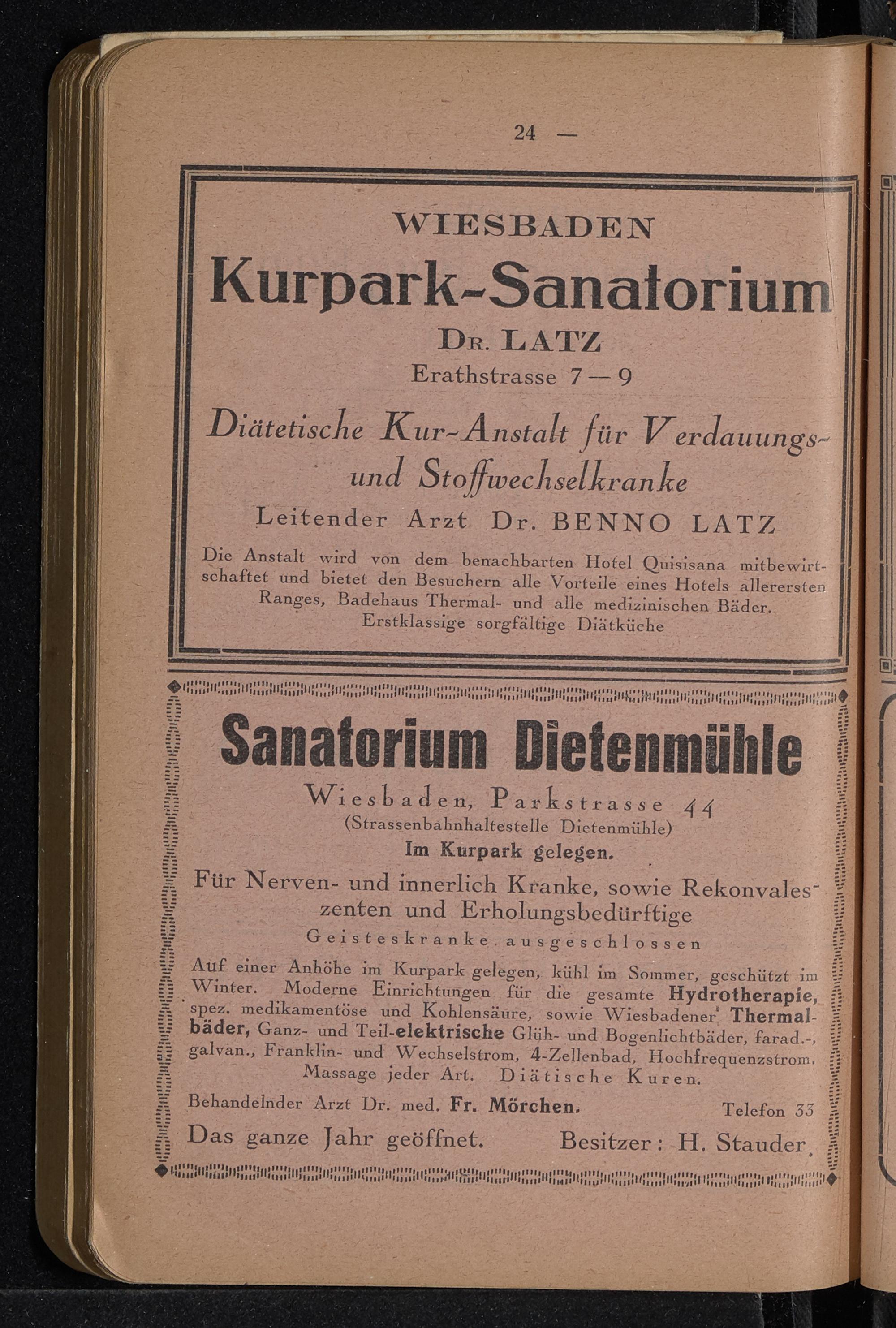 Anhang II: Empfehlungen, bezw. Inserate von Hotels, Pensionen, Privat-Lehr-Anstalten, Kur-Anstalten, Ausflugsorte und Geschäftshäuser von hier und auswärts