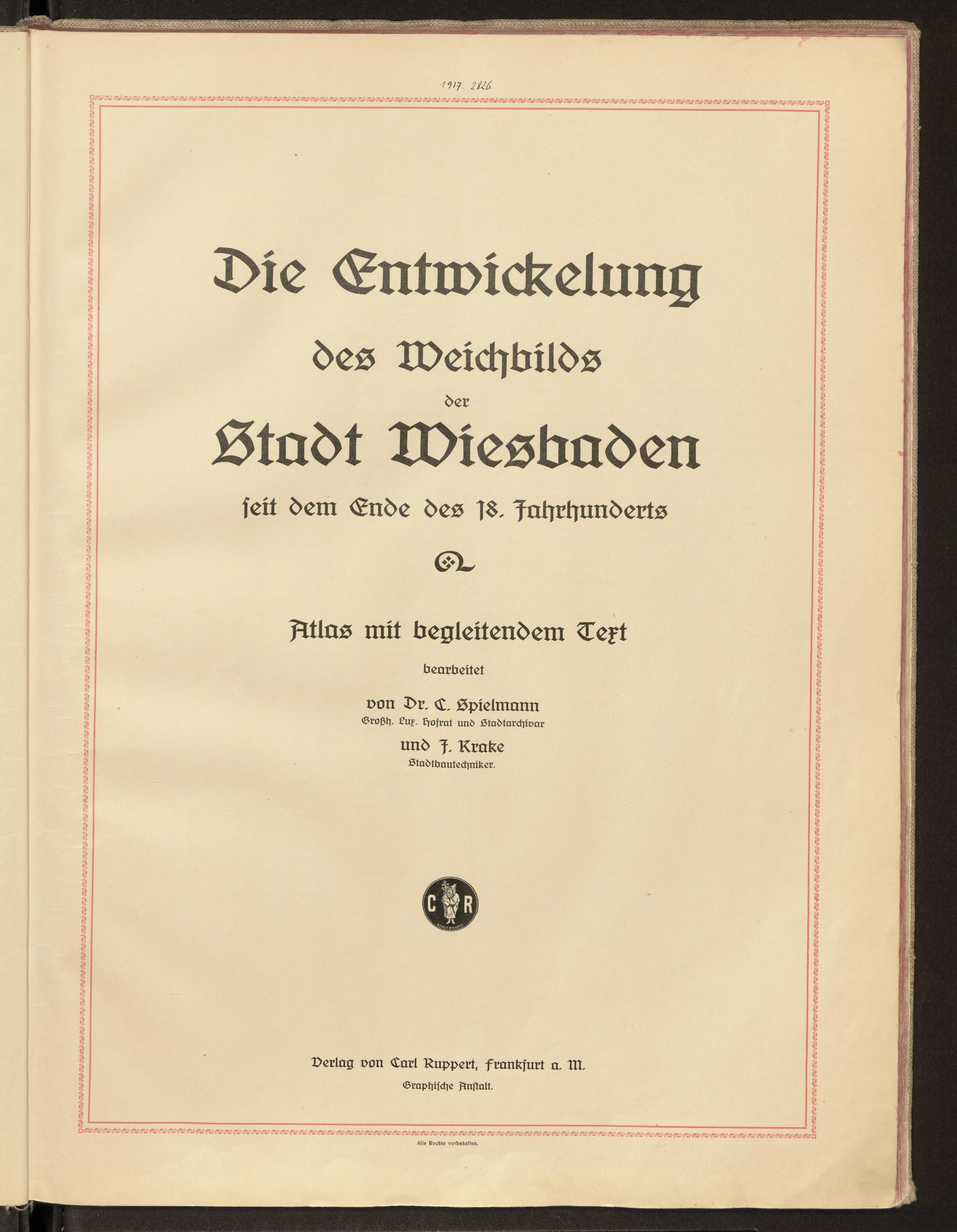Die Entwickelung des Weichbilds der Stadt Wiesbaden seit dem Ende des 18. Jahrhunderts : Atlas mit begleitendem Text / bearbeitet von C. Spielmann u. J. Krake