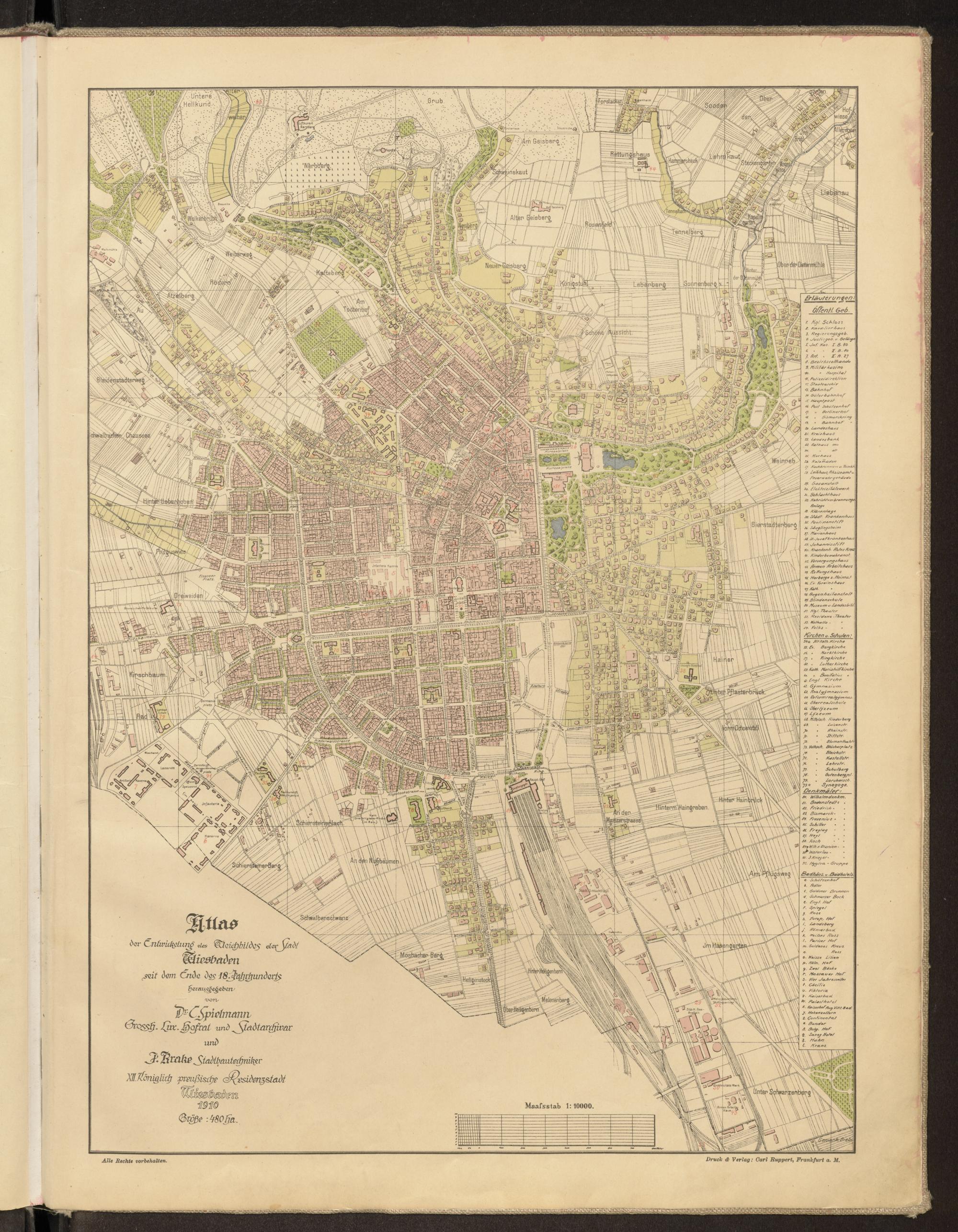 Die Entwickelung des Weichbilds der Stadt Wiesbaden seit dem Ende des 18. Jahrhunderts : Atlas mit begleitendem Text / bearbeitet von C. Spielmann u. J. Krake